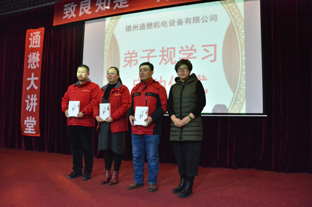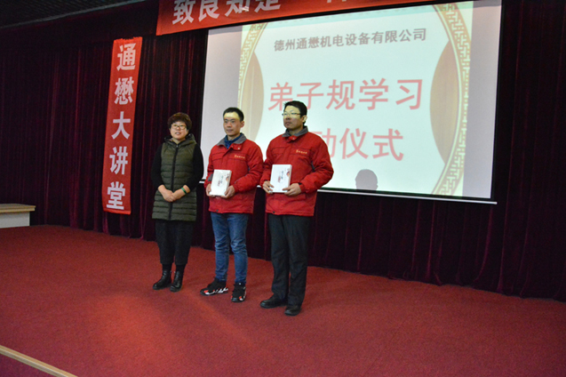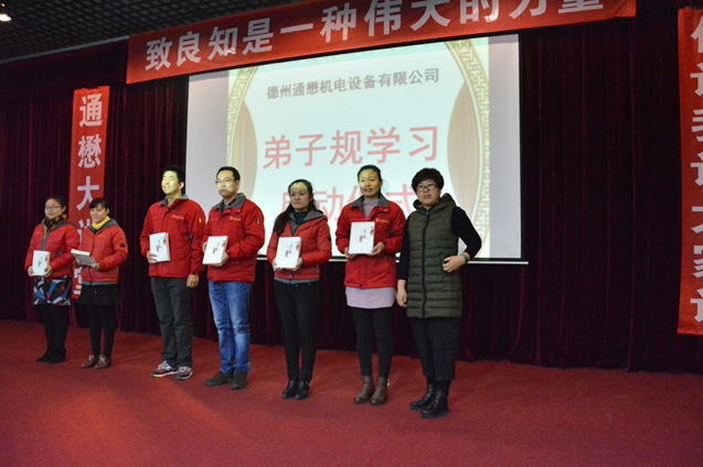 為了大力張揚傳統(tǒng)文化,汲取圣賢思想精華,將愛、恭敬、關(guān)懷、誠信、互助和謙卑的傳統(tǒng)美德落實到每一個人的內(nèi)心深處,進一步深化企業(yè)價值觀,成就員工幸福人生。2016年11月26日,德州通懋機電設(shè)備有限公司在通懋大講堂舉行了,“傳國粹之精華,承企業(yè)之宏志”---學(xué)習(xí)踐行《弟子規(guī)》啟動儀式 。