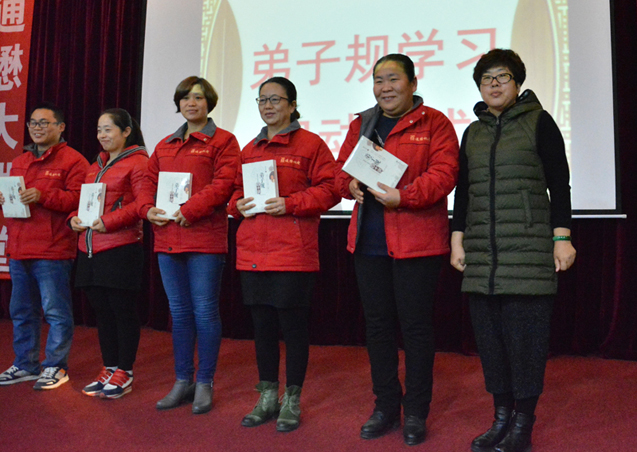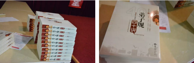 最后,舉行贈書儀式,由蘇愛英女士向全體通懋家人贈與由蔡禮旭老師編寫的《弟子規(guī)四十講》。