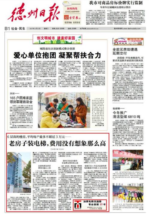 11月22日的《德州日報》也用了相當(dāng)大的篇幅來介紹德州通懋的電梯加裝業(yè)務(wù)。